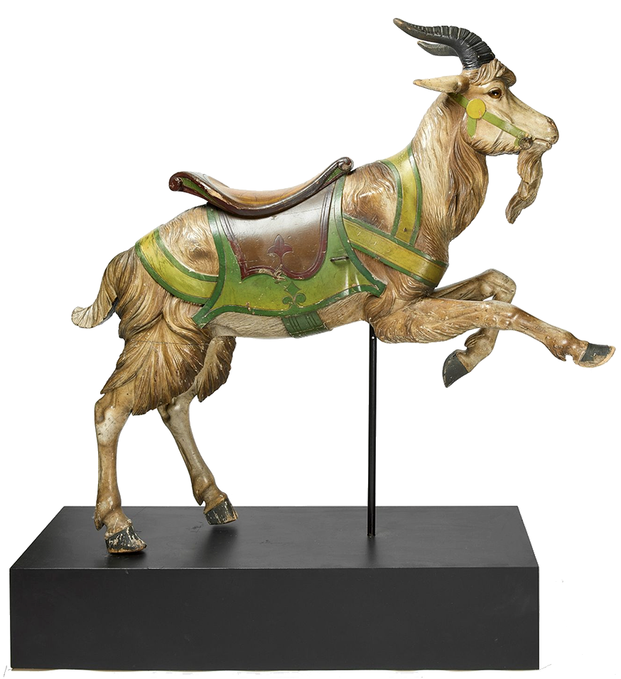 Gustav Dentzel (1846-1909) Carousel goat. Carved wood with 99% original paint. Attributed to the noted menagerie carver Salvatore Cernigliaro Philadelphia, last quarter of the 19th century.
