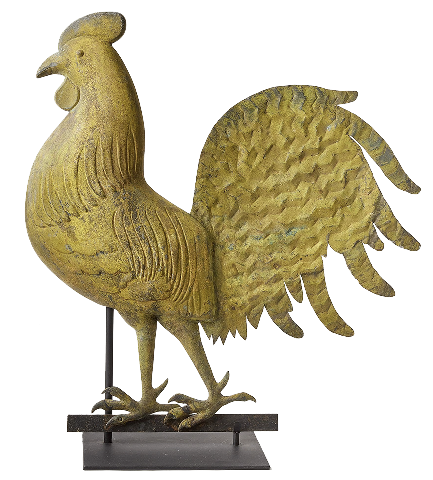 J. Howard - Rooster weathervane. Cast zinc and copper with an history yellow painted surface.