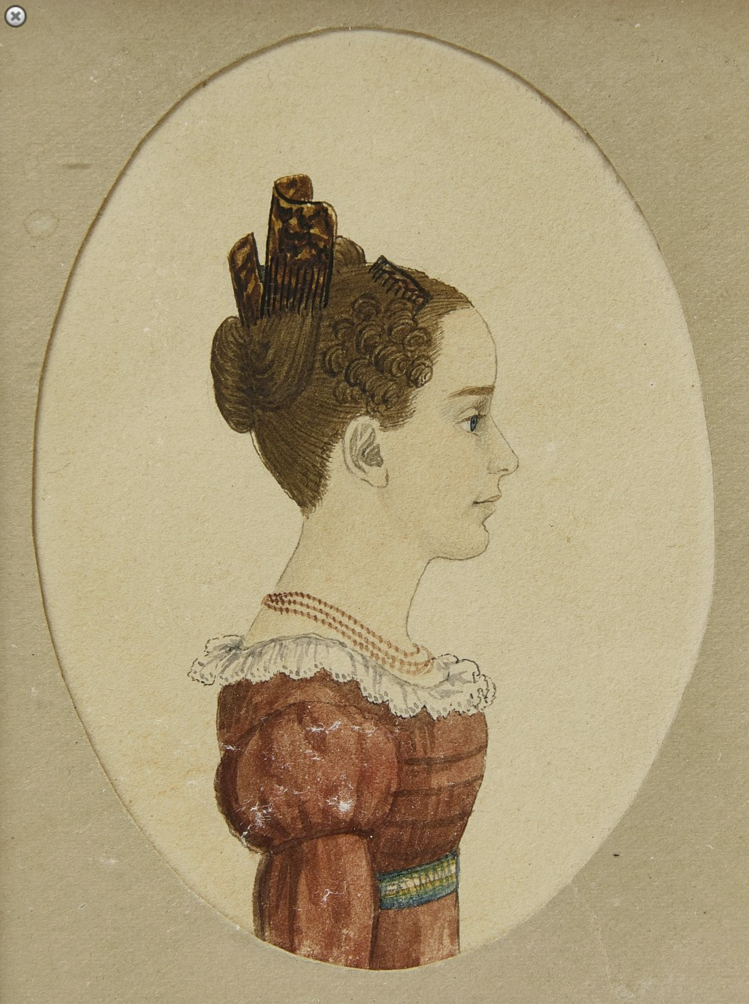 Rufus Porter (1792-1884). Miniature portrait of a young lady. Watercolor on paper.