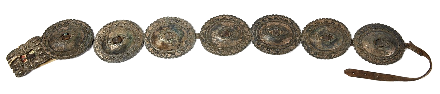 Native American concho belt. Hammered silver. Probably Navajo. New Mexico. Circa 1900.