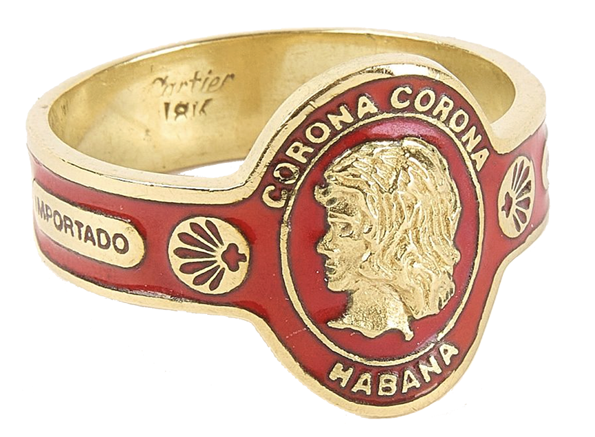 18K yellow gold Cartier cigar band ring with red enamel.